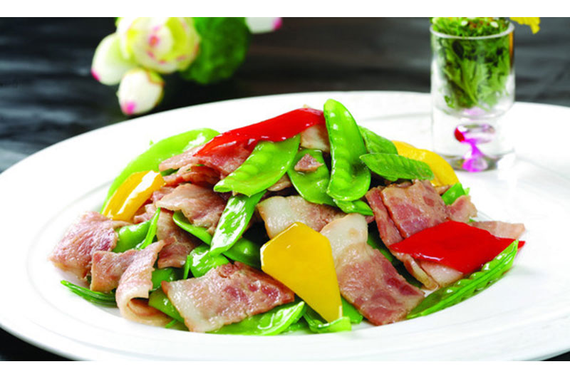 培根、荷蘭豆、紅椒、調(diào)味配料